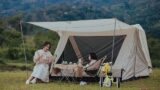 日差しや雨を防ぐだけでなく、リビングスペースや調理場としても活躍する万能ギアです。