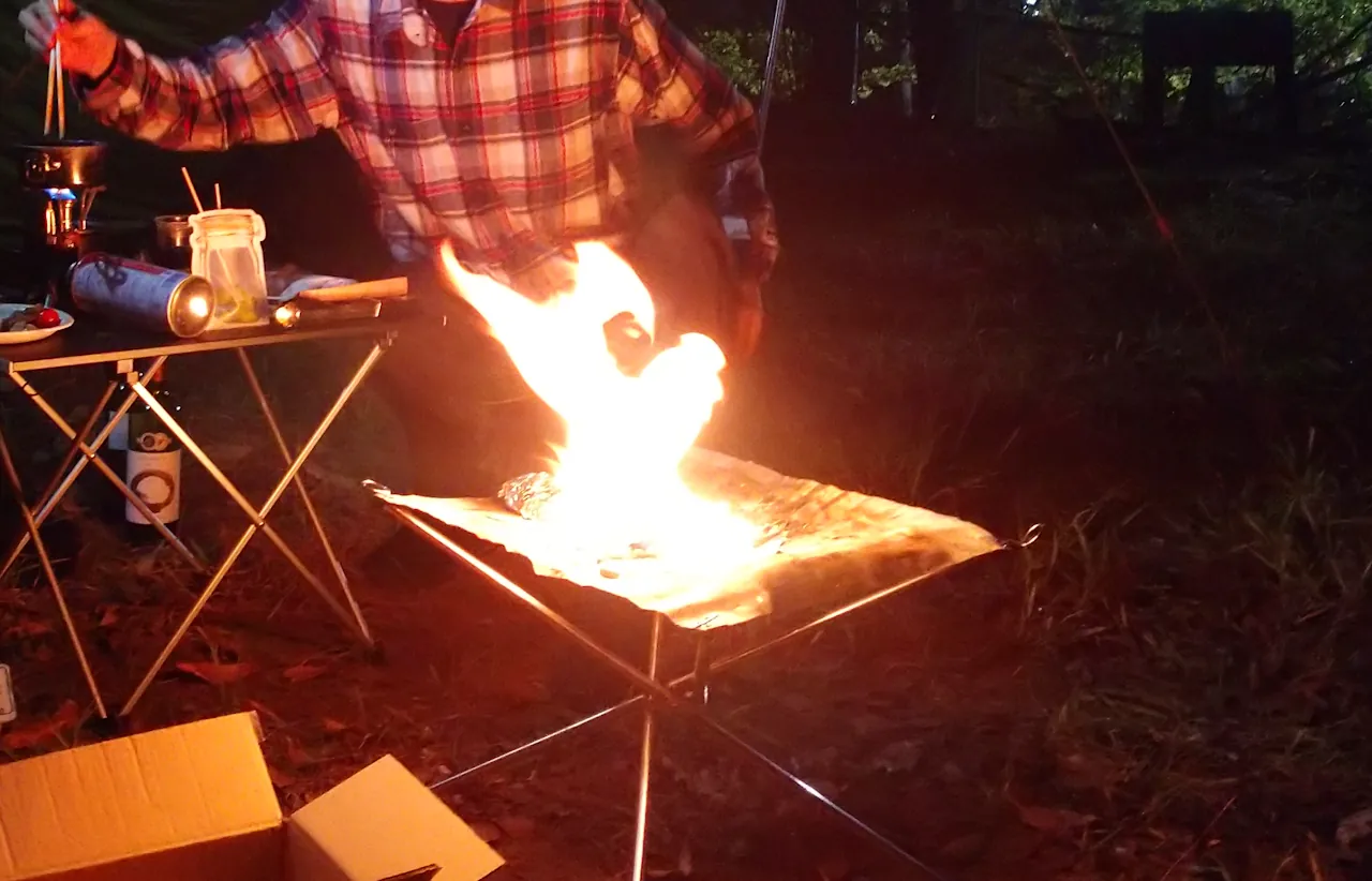 • 焚き火台の下に耐熱シートを敷いて地面を保護
