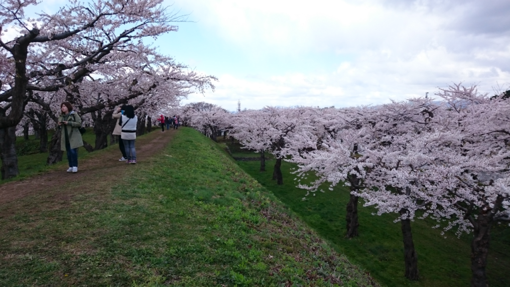 星形の堀に沿って続く土手には、桜並木がずらり。