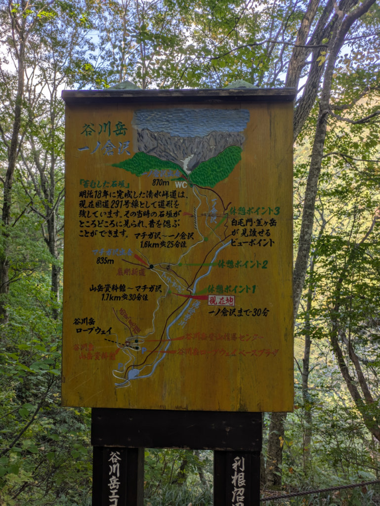 秋の谷川岳は、紅葉にはまだ少し早く、緑が濃い。空気は澄んでいて、歩くたびに葉のこすれる音や、遠くの沢の水音が耳に心地よく響く。静かな山道を歩く時間は、街では味わえない贅沢だ。