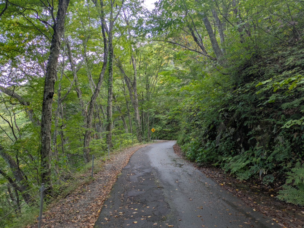 資料館の前で深呼吸をして、いざ出発。舗装された道をゆっくりと進んでいく。