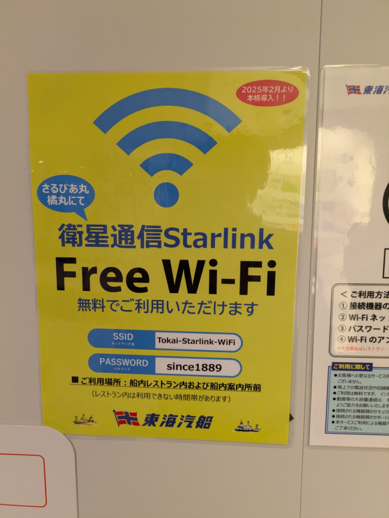 それは衛星通信Starlinkを利用したフリーWiFiが導入されていたこと。陸地から離れた外洋でもネット接続の手段が増えたことはありがたい。