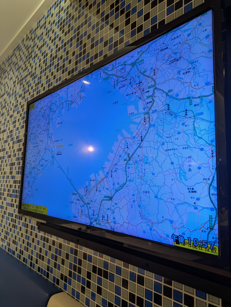浦賀水道を越えたあたりから船の揺れが大きくなり、私は自分の席で横になって過ごすことにした。